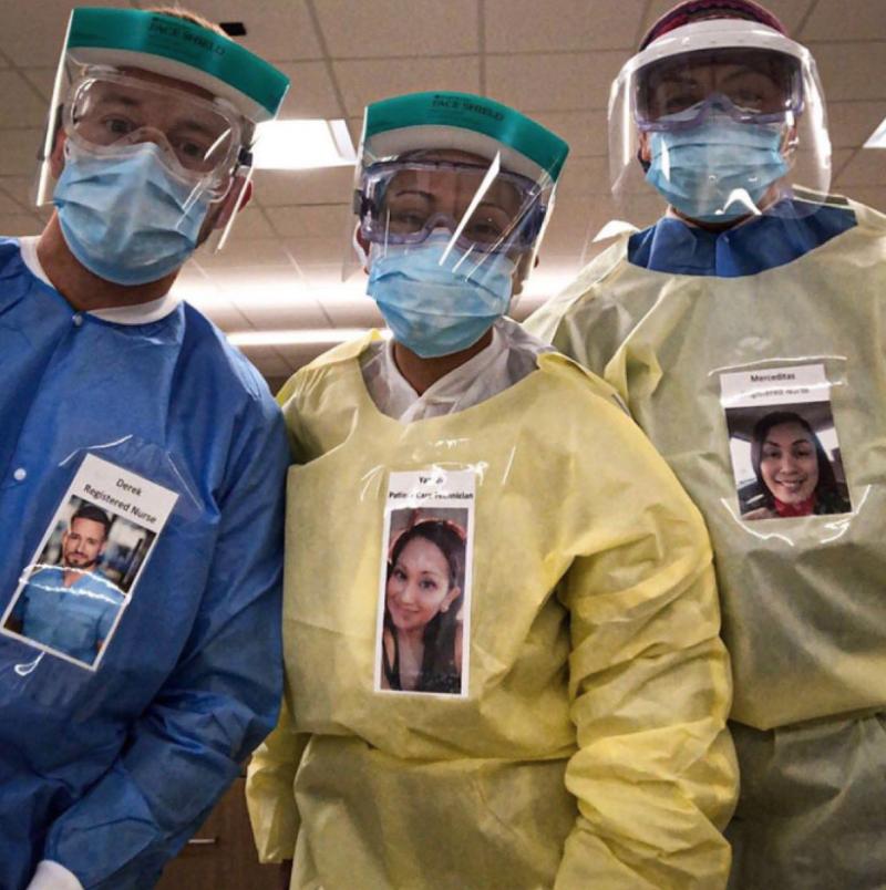 El equipo médico de este hospital se pone en el pecho fotos suyas sonriendo porque los pacientes no les ven las caras con tanta máscara y equipo de protección.